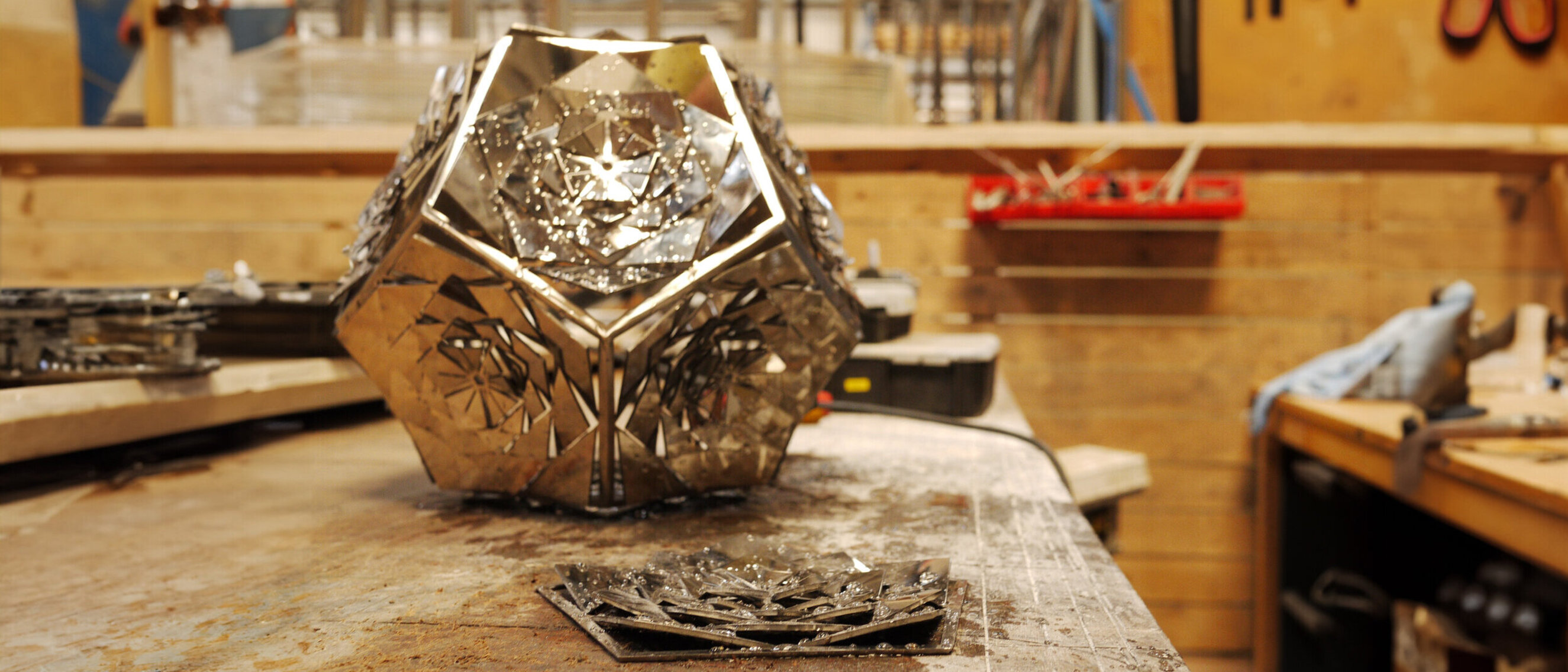 KAGE is a metallurgical artist with nearly 30 years of experience creating sculptures and artistic objects in stainless steel and brass. He has honed his craft through years of experimentation, learning new techniques and developing his skills in TIG welding, silver soldering, polishing and grinding. He is passionate about working with other artists and offers a wealth of services including technical support, innovative solutions, consulting and collaborations to help realize artistic visions and bring his expertise to bear.